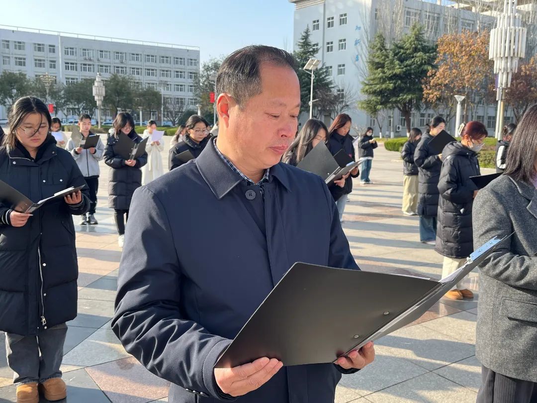 12月13日,第十一个国家公祭日,人文学院在渭华门广场举行“追昔抚今感党恩 踔厉奋发向未来”国家公祭日经典诵读活动,校党委副书记汪勇、人文学院90余名师生参加了此次诵读,该院党总支副书记、副院长王昱主持活动。