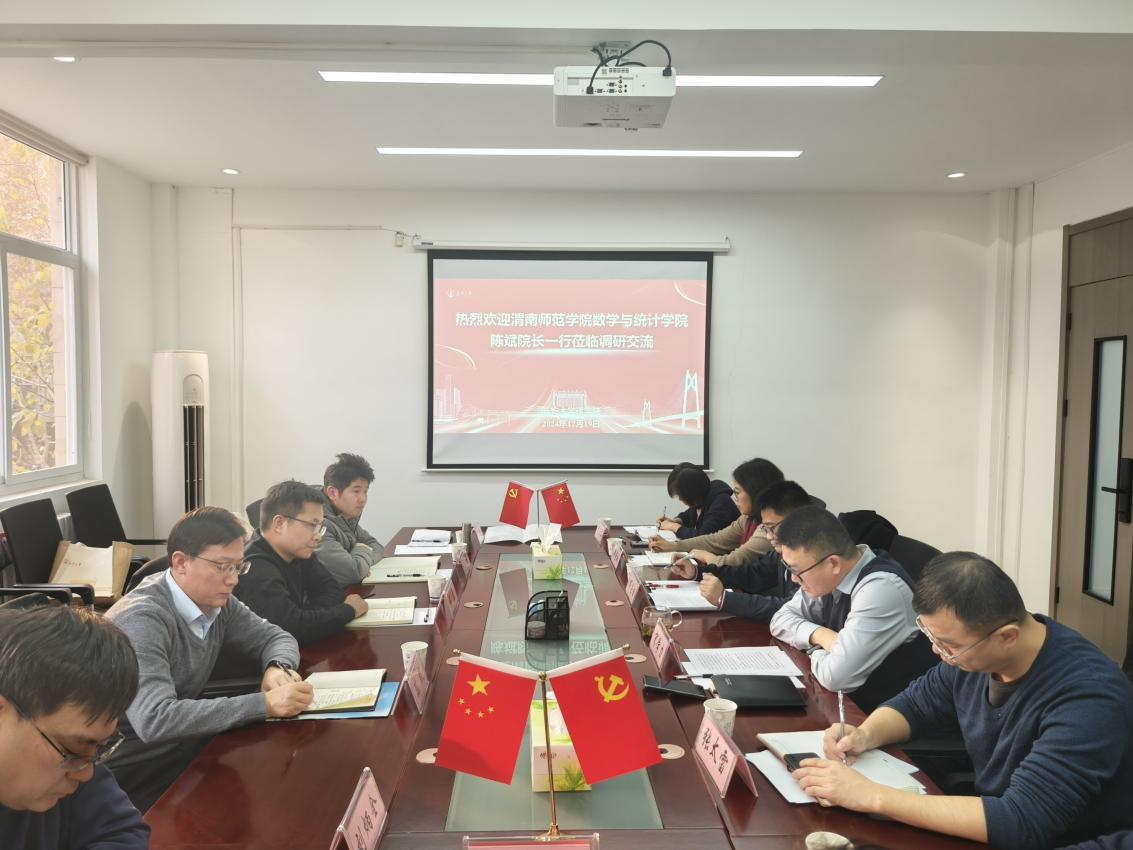 12月19日下午,数学与统计学院院长陈斌一行5人前往长安大学理学院进行调研交流,此次调研重点围绕本科教育教学审核评估和研究生联合培养两大主题展开。