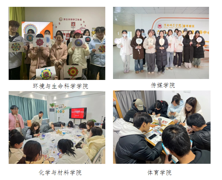 活动期间,二级学院结合学院专业特点开展了一系列具有学院特色的品牌活动,环境与生命科学学院开展了“心灵曼陀罗,艺术疗愈行”心理绘画沙龙、传媒学院开展了“润心竹梦”非遗漆扇体验活动、化学与材料学院开展了“指尖创艺,心暖向阳”“润心竹梦”心理素质提升手工活动,体育学院开展了“一站式”学生社区“润心竹梦”心理健康手抄报沙龙、教育科学学院开展了“润心竹梦”塑造情绪,指尖上的多彩心情活动,外国语学院开展了“润心竹梦”学生代表座谈会、计算机学院开展了指尖创“忆”,箔影绘“心”DIY活动、人文学院开展了“润心竹梦-循着家族故事,解锁藏在岁月里的精神原力”心理沙龙活动、数学与统计学院开展“润心竹梦”情绪转盘手绘活动、音乐学院开展了“润心竹梦”绘画心理健康系列活动、马克思主义学院了开展“润心竹梦”心理育人专题座谈会、美术学院开展了“一站式”“吾画吾心 一心向阳”心理漫画主题活动、莫斯科艺术学院开展了“润心竹梦”“手画我心,直抒心艺”心理绘画活动、经济与管理学院开展了“一站式”心有阳光,我绘我心手抄报比赛、物理与电气工程学院开展了“一站式”学生社区心理委员培训活动。