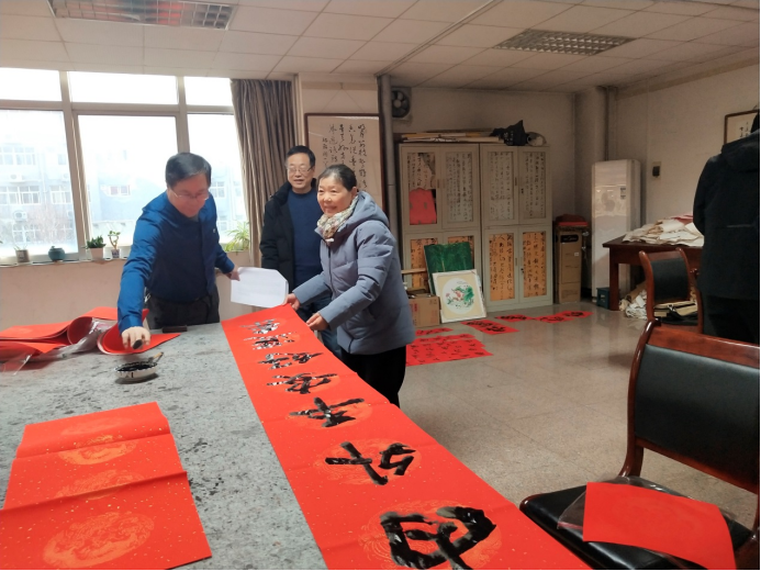 虽是隆冬季节,活动现场却是红红火火,一副副春联、一张张“福”字已经把新年的祝福和春的温暖送至广大教职工心间。大家不仅现场领略了书法家们的潇洒挥毫的风采,欣赏着一副副精美的书法作品,而且也领到了心仪的春联,传统文化氛围满满当当。写的、领的,人人脸上都透着喜气祥和、洋溢着幸福的笑容。(通讯员 张春丽 黄晓琛 审核人 李维喆)