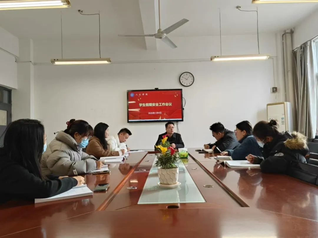 1月9日上午,人文学院在博识楼1318会议室召开了学生假期安全工作会议。学工办副主任孟子祥、全体辅导员参加会议,党总支副书记、副院长王昱主持会议。