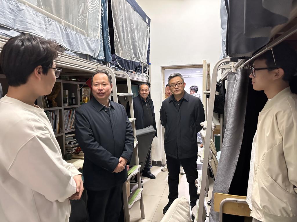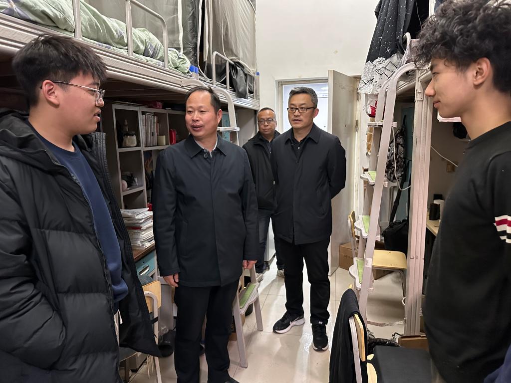 走访过程中,汪勇细致询问同学们寒假生活及新学期规划,倾听学生诉求。他勉励大家要立足新起点,树立清晰目标,以饱满的状态投入学业:“新学期要有新气象,同学们既要认真听课、夯实专业基础,也要主动‘走出宿舍、拥抱校园’‘放下手机、坚持运动’,在强健体魄中激扬青春活力。”他强调,青年学子需平衡学习与生活,积极参与社会实践,争做德智体美劳全面发展的新时代大学生。