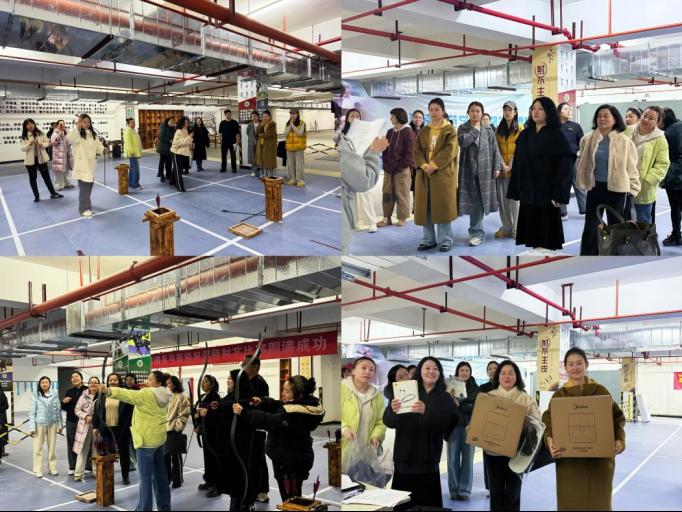 活动伊始,工会委员穆甜详细介绍了本次活动的主题与流程,随后,工会会长逯克刚向全体女教职工表达了节日的诚挚问候与美好祝福。紧接着,女教职工们前往国旗馆进行参观,通过讲解员的专业解说,大家对馆内国旗的深刻象征意义有了更深入地理解,进一步激发了爱国情怀和肩负的使命感。随后,活动转移至射击馆,教职工们分组参与了射箭和投壶等传统项目,不仅体验了传统文化的独特魅力,也促进了团队间的协作与沟通。在趣味游戏环节,各队积极参与经典歌曲片段的抢答,现场气氛热烈,欢声笑语不断。