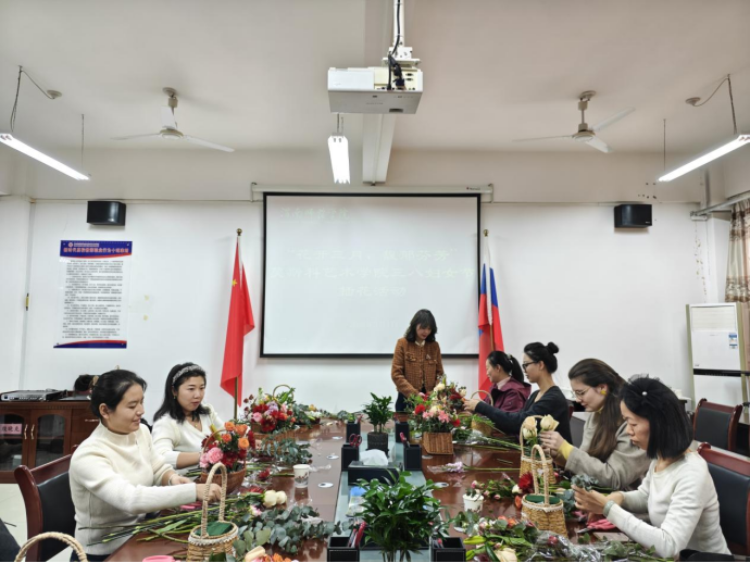 3月5日上午,继续教育学院举办“姹紫嫣红”主题插花活动。学院女教工欢聚一堂,在花香四溢中感受插花艺术的魅力,共度美好节日时光。