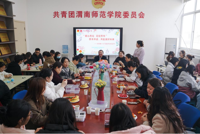 阳春三月,草长莺飞。在第115个“三八”国际劳动妇女节来临之际,校团委于3月7日下午在渭师青年之家举办主题为“香沁杏坛 花开芳华”的庆祝活动。校团委书记赵琦,女教师代表、学生代表50余人参加活动,活动由校团委副书记任晓婷主持。