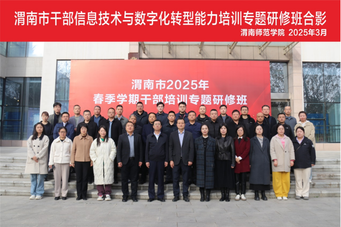 本次干部信息技术与数字化转型能力培训专题研修是2025年渭南市春季学期干部培训第一期,春季干部培训在我校共举办三期。本期培训班为期三天,共安排了《数字化转型中的组织变革与人才建设》《数字化转型助力公共服务创新》《网络安全与政府信息安全》《信息化工具实操》《数字政府建设与政务信息化实践》《数字化转型的国家战略与政策解读》等专题教学。本次培训是充分发挥我校科教资源和学科特色优势,全面提升渭南市党政干部对信息技术和数字化转型的认知水平,增强其在数字时代推动政府治理现代化和公共服务创新的能力,助力数字渭南建设的重要举措。(通讯员 牛渭敏 审核人 周德锋)