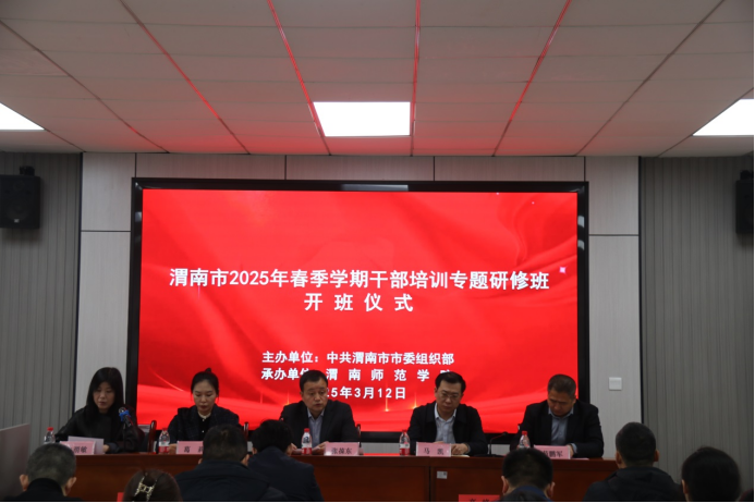 3月12日,由渭南市委组织部主办,我校承办的渭南市2025年春季干部信息技术与数字化转型能力培训专题研修班在我校开班。渭南市干部教育中心副主任张葆东、渭南市委组织部干部教育科科长马凯、继续教育学院副院长苟鹏军、计算机学院教授葛莉出席开班仪式。来自全市党群各部门、市委各部门、市级国家机关各部门的41名副科级以上干部参加仪式。开班仪式由继续教育学院办公室主任牛渭敏主持。