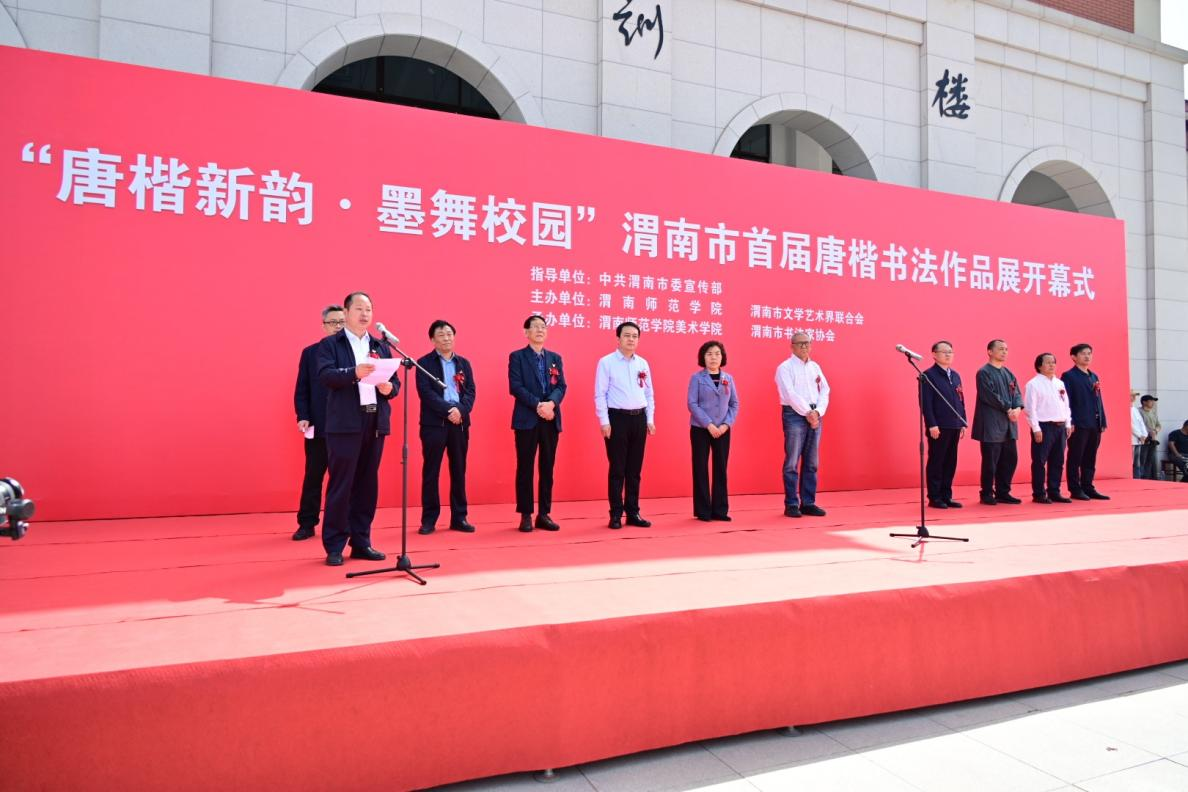 4月10日下午,由渭南市委宣传部指导,欧宝娱乐官方app与渭南市文学艺术界联合会主办,欧宝娱乐官方app美术学院与渭南市书法家协会共同承办的“唐楷新韵·墨舞校园”渭南市首届唐楷书法作品展在欧宝娱乐官方app富平校区开幕。党委副书记汪勇、副校长王菊霞、陕西省书法家协会副主席金石拓本委员会主任张鉴宇、中共渭南市委宣传部副部长兰勇、渭南市文学艺术界联合会主席张力、渭南市书法家协会主席薛小虎等人出席开幕式。