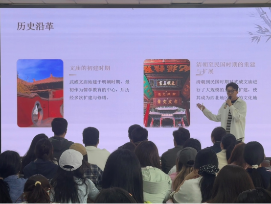 分享会上,十一位优秀青年代表依次登台,以生动的语言和饱满的热情,带领在场师生走进他们的家乡。从历史悠久的古迹遗址到独具特色的民俗风情,从壮丽的自然风光到深厚的文化底蕴,同学们的分享内容丰富多彩,地域覆盖广泛。他们用真挚的情感和细腻的讲述,将他们家乡各地的风土人情娓娓道来,赢得了现场阵阵掌声,也让师生们仿佛进行了一场跨越山河的文化之旅。