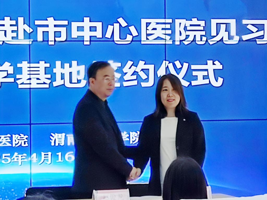 4月16日,教育科学学院李西彩院长、马雅菊副院长、心理学专业负责人孙悦,携心理学专业23级与24级学生,共同前往渭南市中心医院精神心理科开展见习活动。本次活动以“理论筑基·实践赋能”为主题,通过校院签约授牌、经验交流分享与临床实地观摩等环节,成功搭建起心理学理论研究与临床实践的桥梁。
