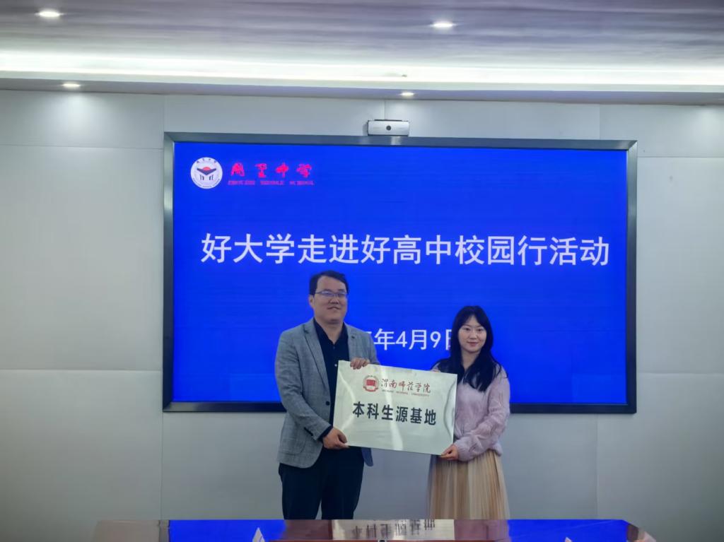活动期间,张佳凡、崔鹏两位老师代表学校分别向陕西省周至中学、西安市临潼区临潼中学、西安市临潼区华清中学等高中颁授“本科生源基地”牌匾,以此与各高中建立常态化的长效合作机制,为优秀学子成长搭建更广阔的平台。