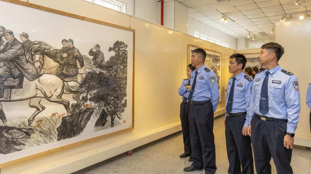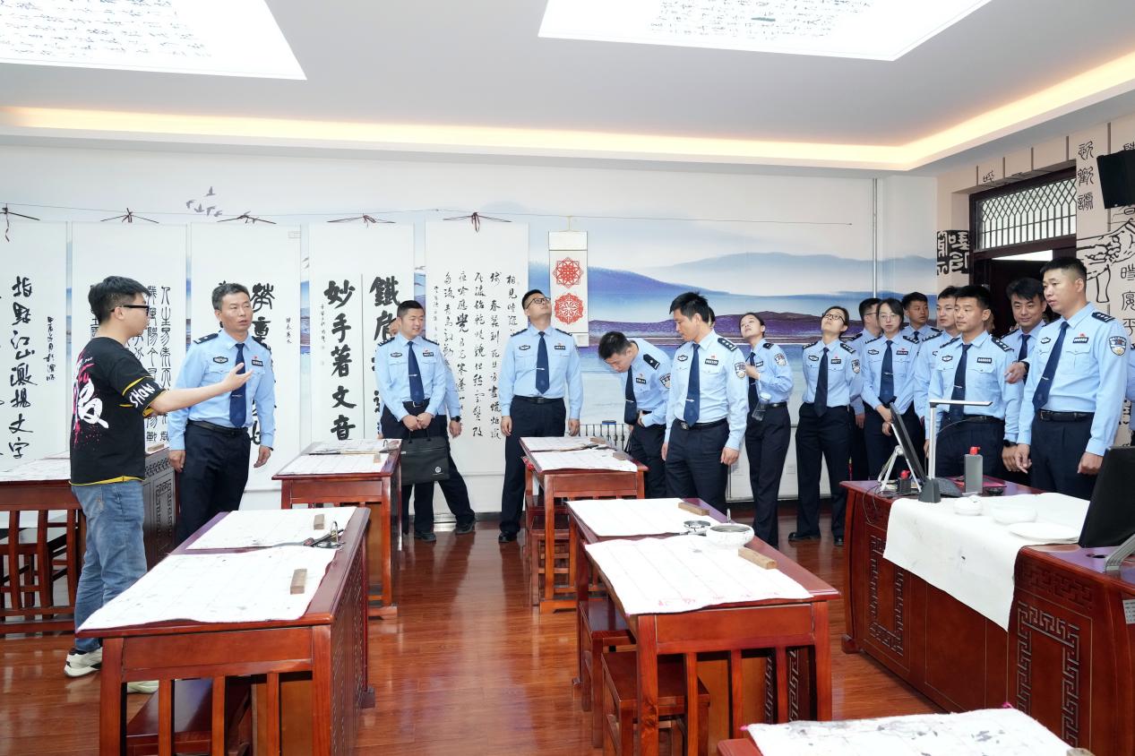 最后,市公安局民警一行50人参观了莫艺红色主题师生书画展以及画室、学前教育实训室、智慧书法教室、音乐厅等教学场地,深入了解中外合作办学的发展历程、办学特色及合作交流等相关情况。