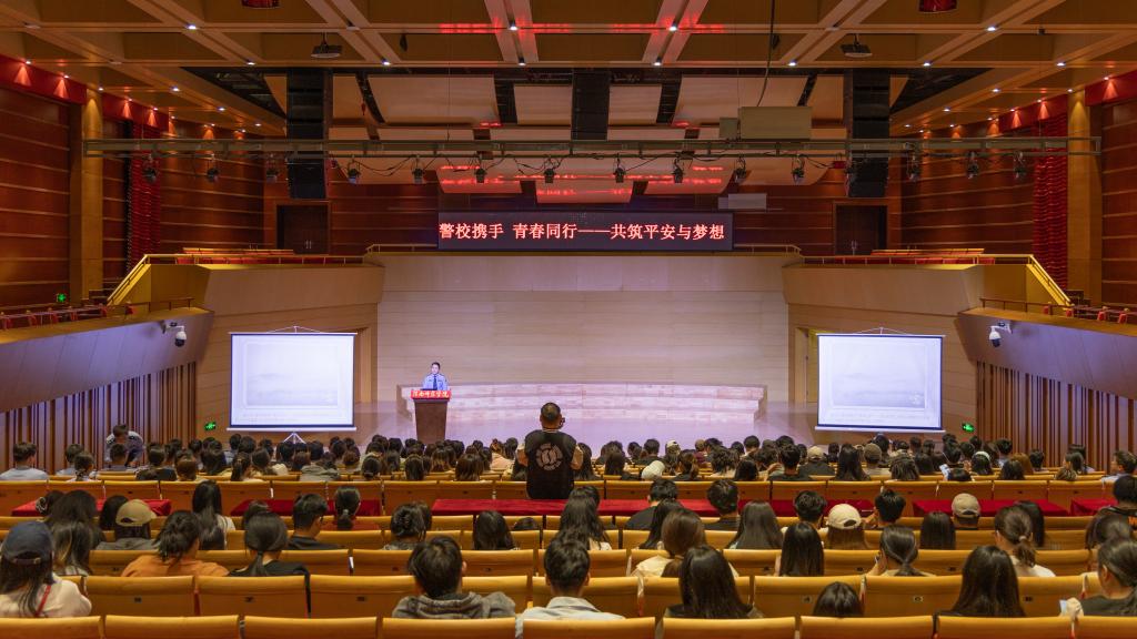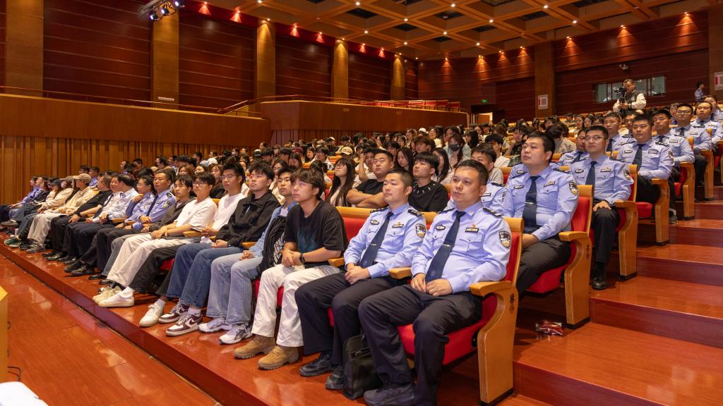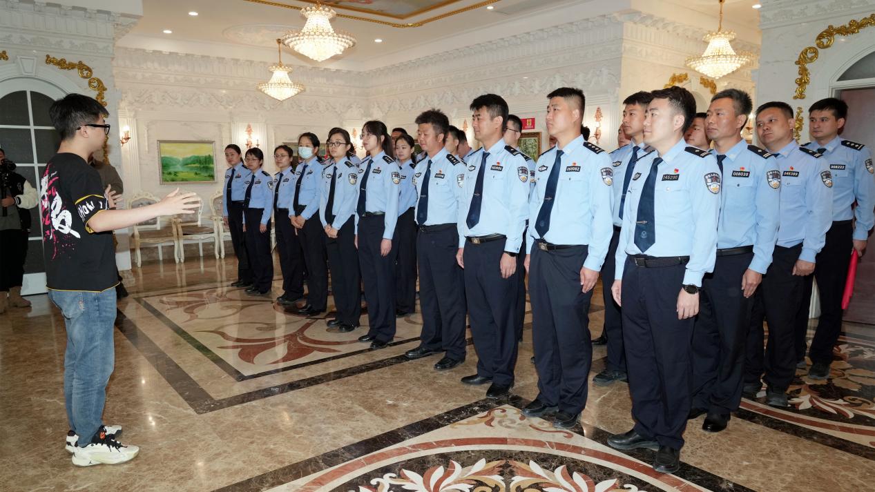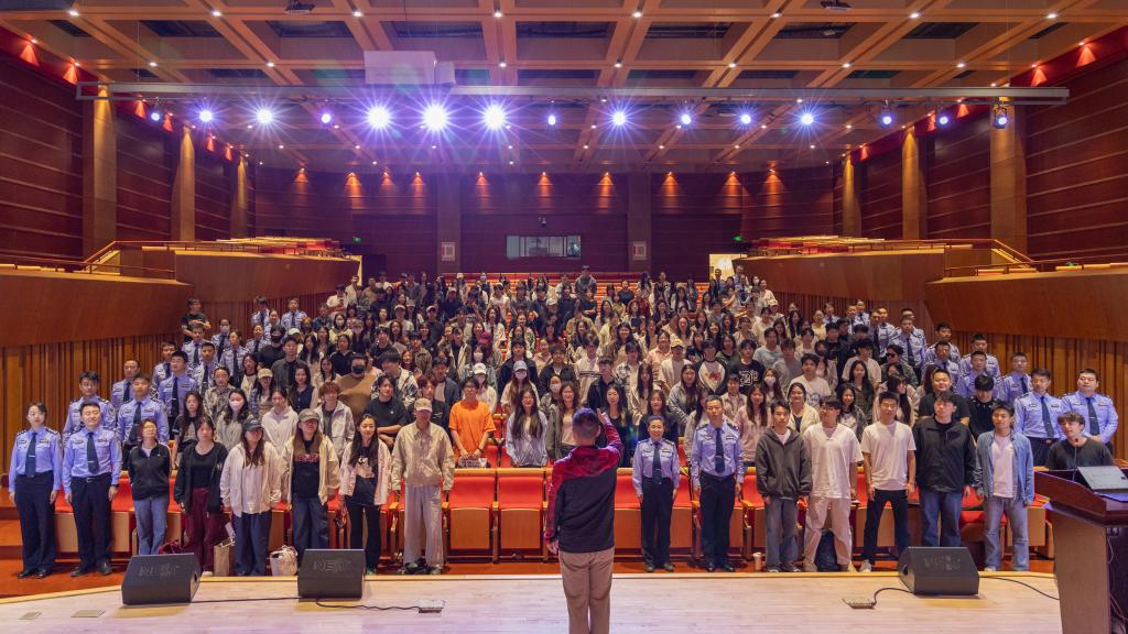 活动中,市公安局政治部徐怡心同志通过反诈和禁毒宣讲、《诗经》读书分享及公安招录政策解读,以生动案例传递安全知识,以文化共鸣拉近警民距离。在互动问答环节,民警们针对学生关注的校园安全、电信诈骗、法律法规等问题进行逐一解答和现场交流互动。随后,青年民警与莫艺学子共同唱响《没有共产党就没有新中国》,将爱党爱国情怀与青春奋进力量凝聚成澎湃声浪,为活动画下昂扬向上的注脚。