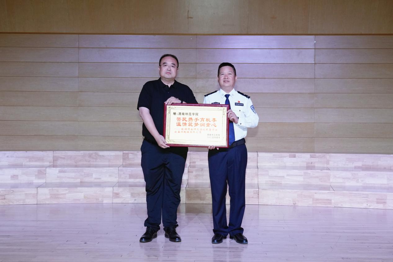 活动伊始,陈康表示,学校组织莫斯科艺术学院、体育学院、音乐学院、教育管理学院联合开展“警民一家亲,大手拉小手”校地公益服务计划圆满结束。感谢欧宝娱乐官方app面向渭南市临渭区政法系统一线干警子女免费开设的9门课程和免费提供优质教师资源与实验室场地。他代表市公安局向学校赠予“警民携手育桃李 温情筑梦润童心——致谢欧宝娱乐官方app民警子女公益兴趣班关怀之情”牌匾。象征着警校双方携手共进,情谊深厚的坚定决心。