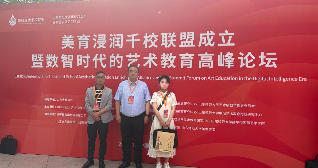 5月17日,由山东省教育厅指导,山东师范大学、中华美学学会青年美学专业委员会主办,山东省学校美育改革发展研究中心、山东师范大学艺术学教学指导委员会、教务处、赫尔岑国际艺术学院、音乐学院、美术学院、美学与美育研究中心、中俄艺术教育比较研究中心、美术理论与美术教育研究中心承办的美育浸润千校联盟成立暨数智时代的艺术教育高峰论坛在山东师范大学千佛山校区举行。我校莫斯科艺术学院殷晓克教授、梁卫民教授、孙凡博士作为嘉宾出席报告会。