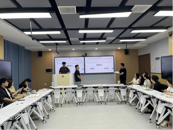 为强化培训实效,沙龙特设案例研讨模拟演练环节。物理与电气工程学院辅导员孙佳荣、美术学院辅导员张锦立进行了现场AB角案例研讨模拟演练,生动呈现“学生夜不归宿处理”“帮助学生适应AI时代的职业发展而产生的焦虑”等复杂情境。参训辅导员通过现场交流、分组研讨、交叉点评,深度参与案例解构分析。大家纷纷表示,沉浸式演练“既暴露工作盲区,又激活创新思维”,为应对现实案例提供了可复制的范式参考。