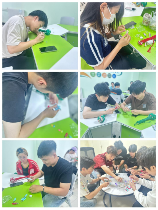 发夹制作传递情绪密码。活动以手工发夹制作为载体,引导学生通过色彩搭配、材料组合表达内心情感。活动现场,丝带、珍珠、金属配件等材料琳琅满目,参与学生在教师指导下,将抽象情绪转化为具象设计——有的选择明快色调诠释乐观心境,有的用层叠褶皱隐喻成长烦恼,每一枚发夹都成为情绪的“可视化日记”。