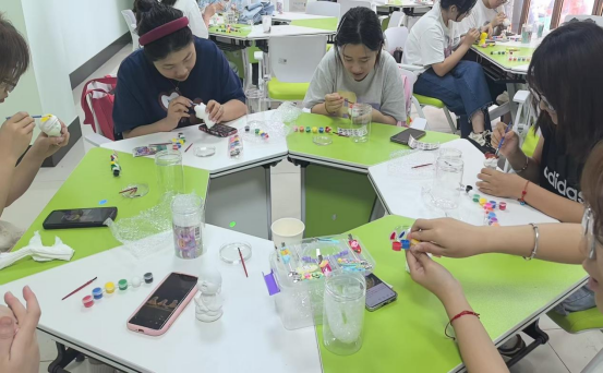 在绘制的过程中,同学们展现出了丰富的想象力和创造力。凭借着对色彩的敏锐感知和独特审美,运用五彩的颜料为石膏娃娃赋予了全新的色彩与个性。