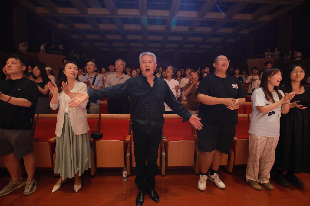 音乐会由13名中央音乐学院声乐歌剧系师生以及欧宝娱乐官方app6名师生同台演唱耳熟能详的声乐作品,毛主席永远跟我在一起,松花江上,黄河怨,思乡,草原之夜,阳关三叠等众多经典作品被一一唱响,引发观众共鸣。音乐会在气势磅礴,激情澎湃的《没有共产党就没有新中国》中被推向高潮,观众纷纷起立,与台上师生共同歌唱,雄浑磅礴的旋律,响彻现场。
