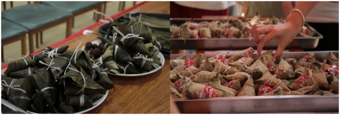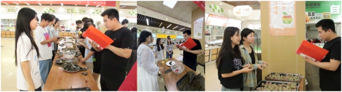活动现场,气氛热烈非凡。学校后勤服务中心人员精心准备了糯米、粽叶、红枣、豆沙等丰富食材,整齐地摆放在操作台上。师生与后勤人员围在一起,选粽叶、填糯米、加内馅、绕丝线,每一个步骤都充满了挑战与乐趣。尽管许多同学都是第一次尝试包粽子,手法略显生疏,但大家相互学习、彼此帮助。很快,形态各异的粽子便摆满了桌面,有的三角形,还有的正方形,很多形状不太规则,却也别具一番风味。学生通过亲手体验包粽子,从充满创意的粽子,为活动增添了别样的趣味,感受传统美食制作乐趣。
