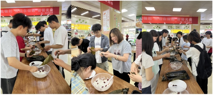 仲夏之际,粽叶飘香。为传承中华优秀传统文化,丰富校园文化生活,5月29日上午,学生工作部在我校学生第一餐厅一楼举办“艾香粽韵传情,青春端午同庆”主题教育活动。通过“巧手制粽”、端午知识大闯关等系列活动,组织师生沉浸式体验端午传统习俗,深化对中华文化精神内涵的认知。