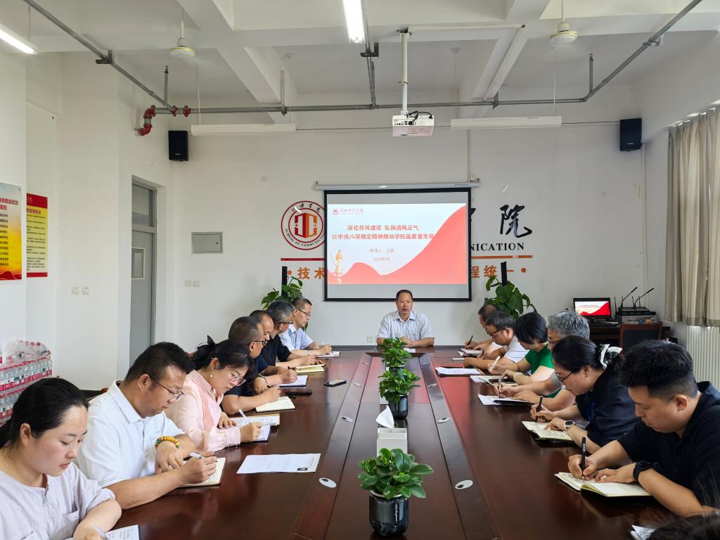 6月12日下午,校党委副书记汪勇在富平校区1105会议室为传媒学院、美术学院党政班子成员及教师代表、博士代表等20余名教职工带来了一场以“深化作风建设 弘扬清风正气 以中央八项规定精神推动学校高质量发展”为主题的专题党课。此次党课围绕深入贯彻中央八项规定精神学习教育,深刻阐述了其重要意义与实践要求,为教职工带来了深刻的思想启迪。