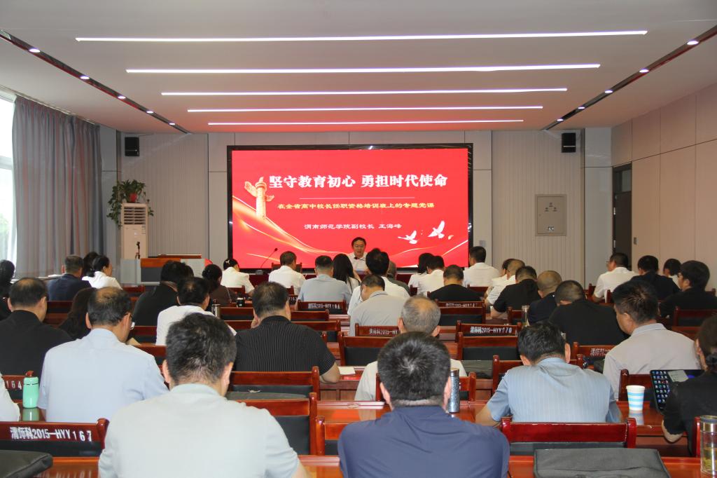 在中国共产党成立104周年之际,6月30日下午,副校长王海峰以“坚守教育初心勇担时代使命”为主题,为2025年陕西省高中校长任职资格培训班学员及继续教育学院全体党员、入党积极分子讲授专题党课。继续教育学院直属党支部书记张晶主持。