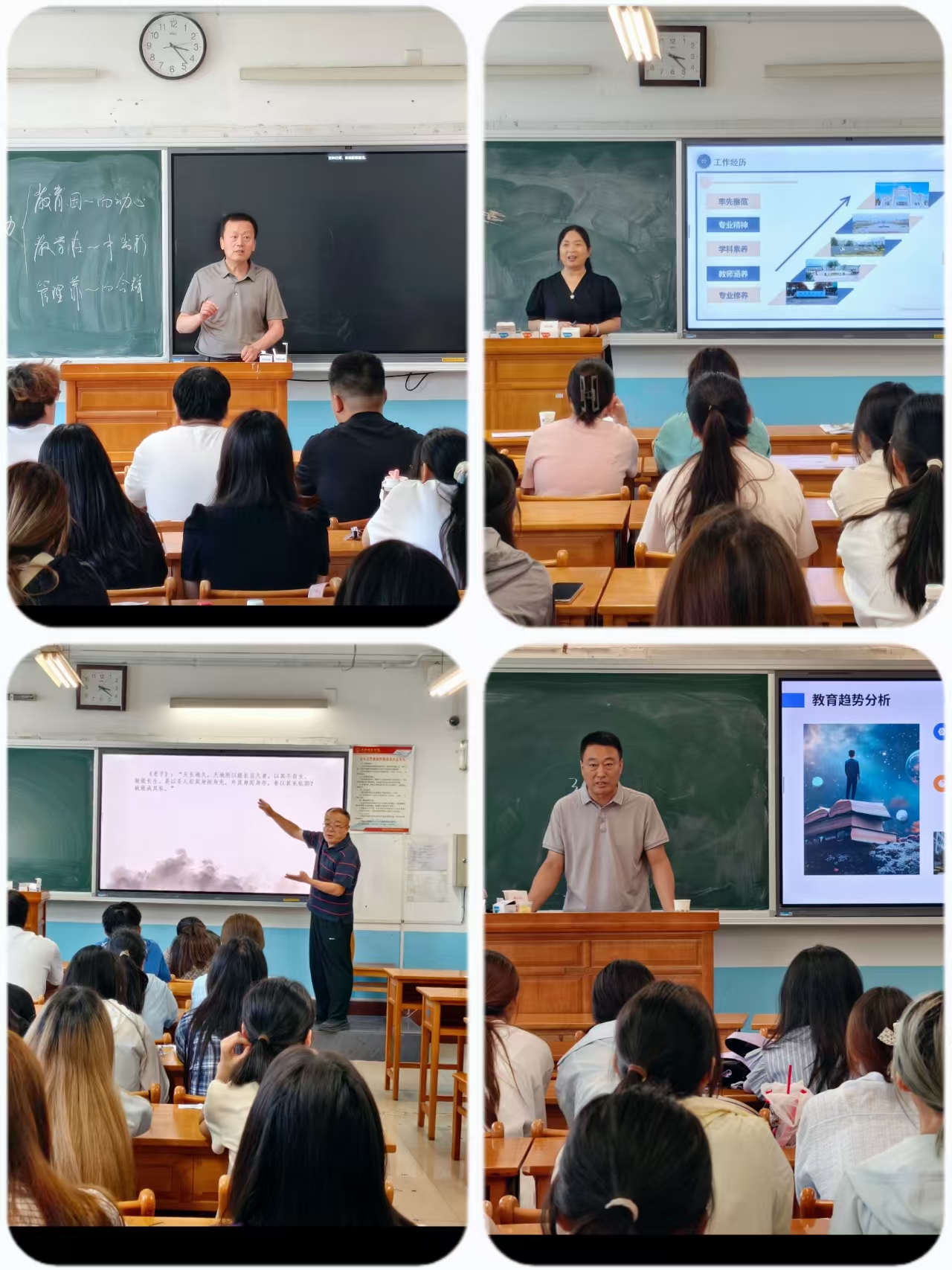 随后,三位校长为外国语学院师生带来了精彩的专题报告。崔建功副校长以《从高考命题看英语教师核心素养培养—— 基于2025年高考英语试题的教学策略启示》为题,剖析高考英语试题命题趋势,结合完形填空、阅读理解等案例,讲解在教学中渗透语言运用、思维品质和文化意识等核心素养的方法。白晓峰校长以《仰望星空,脚踏实地 —— 把握自己的人生,主宰自己的命运》为题,用个人教育经历激励学生树立远大理想,珍惜大学时光,提升综合素质。李川副校长围绕《班主任及班级管理,师范生的必修课》,通过班级管理实例,强调师范生培养班级管理能力、掌握沟通技巧的重要性,让学生对班主任工作有了深刻认识。
