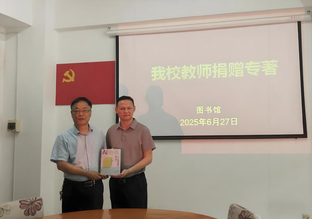 6月27日上午,我校教师何泰伯教授向图书馆捐赠新出版的专著《AI助教:人工智能辅助教与学》(江西科学技术出版社2025.3)三册。该书是一部实用的人工智能教与学专著。