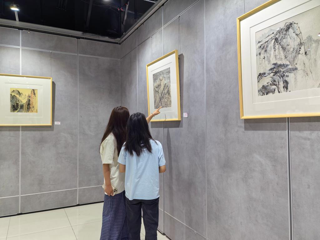 展览现场,怀德美术馆化身为沉浸式美育课堂,百幅作品构筑起跨越时空的文化对话长廊。国画作品以泼墨重彩再现华岳烟云的雄浑气韵,通过自然山水与历史典故的意象叠合,展现出“山岳即史书”的文化厚度;油画作品则以炽烈色彩重构红色记忆,在光影律动中铺陈革命岁月的精神图谱。特邀作品更以当代艺术语汇实现传统文化精神的创造性转化,形成传统技法与现代审美的交响共鸣。观展师生在国画的苍劲笔触中感受山河魂魄,于油画的斑斓色彩里触摸历史温度。同学们表示,此次展览作品既深植华山文化的厚重底蕴,又饱含未来憧憬的灵动畅想,艺术语言相较于文字更具直击人心的感染力,以视觉张力诠释着历史积淀与时代脉搏的和谐共鸣。
