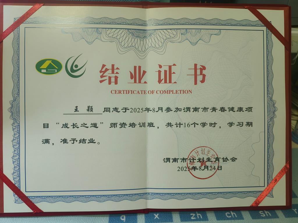 此外,杨凤霞、张莉娜、王颖三位同志参加的青春健康师资培训班由渭南市计划生育协会组织,2025年8月22日至24日在渭南市大荔县举行。该培训聚焦“成长之道”教材解读和参与式互动活动,旨在培养青春健康教育骨干。三位职工在三天紧张学习中,通过小组讨论和教学模拟,成功获得师资培训师资格认证,为医院青春健康教育体系增添新力量。