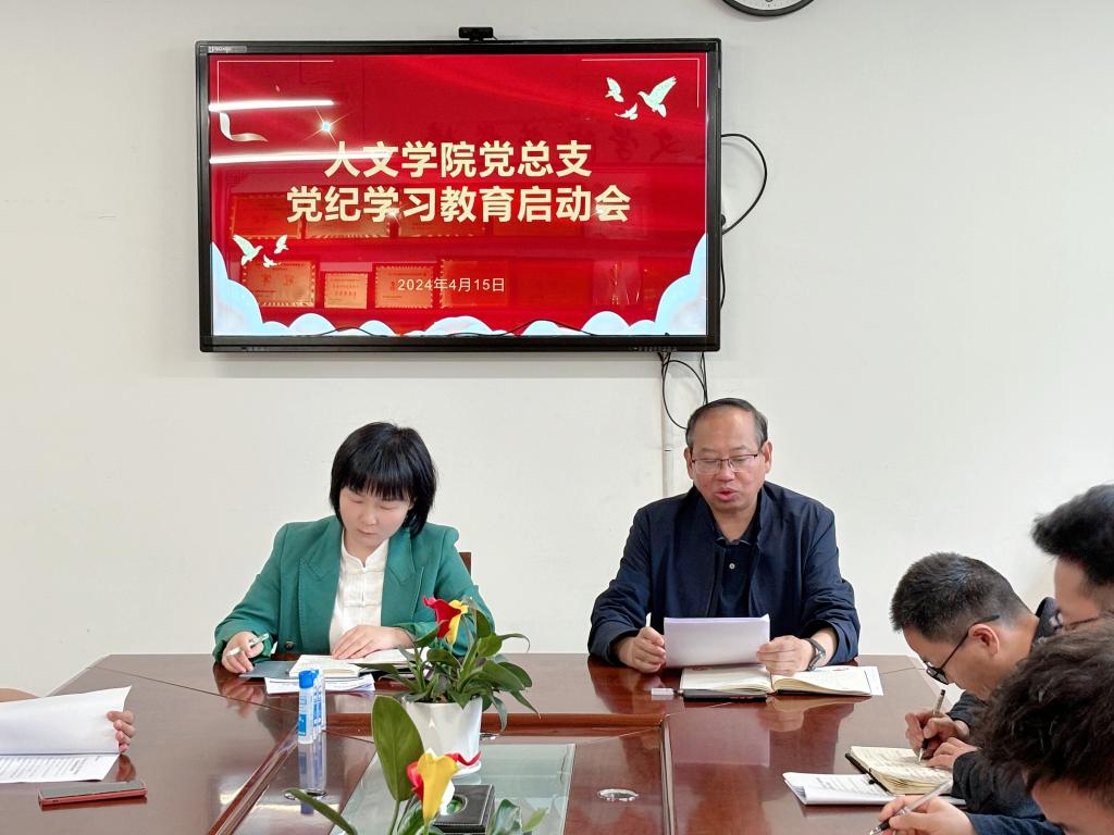 4月15日下午,人文学院党总支召开党纪学习教育启动会。会议由党总支书记张晶主持,全体处科级干部、各支部书记参加会议。