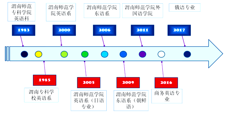 外国语学院是欧宝娱乐官方app办学历史最悠久的院系之一,其的历史可以追溯到1983开设的渭南师范专科学校英语科,1985年设英语系,2000年开始招收第一届4年制本科生。2005年学校成立东语系,开设日语专业,2009年增设朝鲜语专业。2011年学校改革管理机制,原英语系和东语系合并,成立外国语学院。学院现设有英语系、东语系、俄语系3个教学系及1个大学外语教学部,2个研究中心(外国语言文化和外语教育研究中心和泰国研究中心);开设英语(师范)、日语(师范)、朝鲜语、商务英语、俄语5个本科专业,招收本科和专升本两个层次的学生。