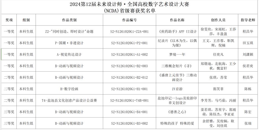 近日,第十二届全国高校数字艺术设计大赛陕西省赛区获奖名单公布。我校传媒学院师生获得一等奖4项,二等奖3项,三等奖2项。全国高校数字艺术设计大赛是《全国普通高校学科竞赛排行榜》竞赛项目。