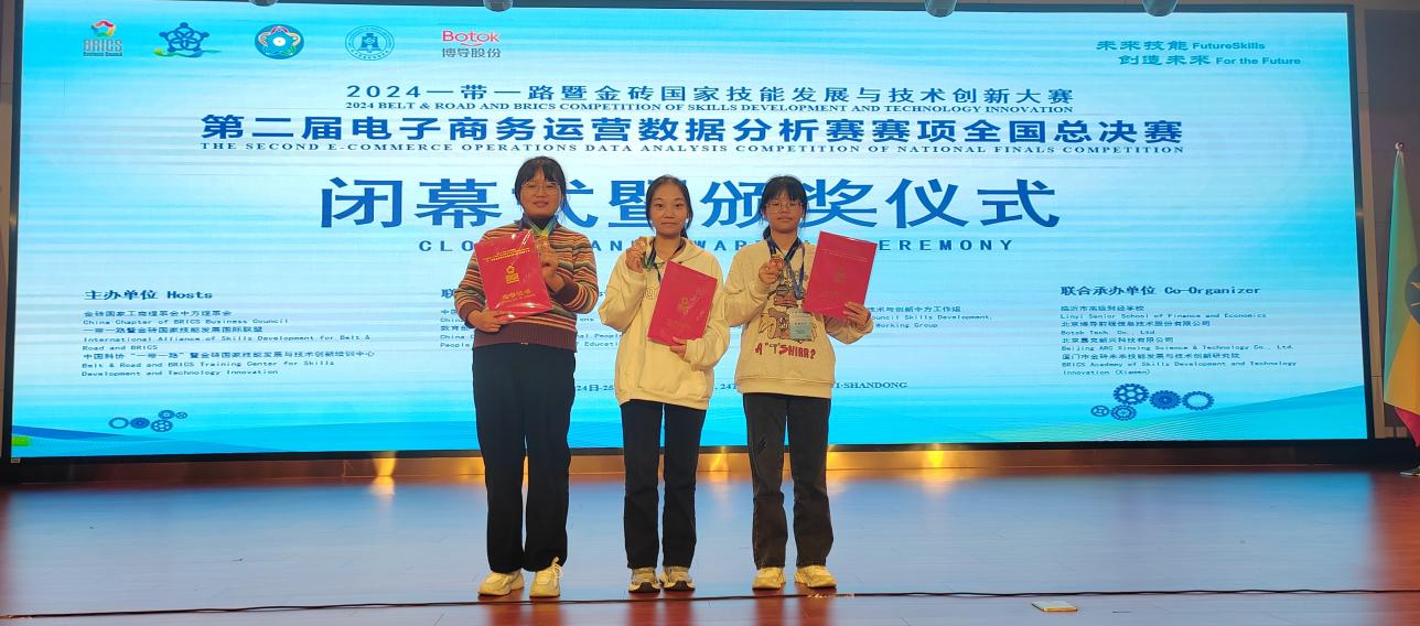 10月26日,2024年一带一路暨金砖国家技能发展与技术创新大赛第二届电子商务运营数据分析赛赛项全国总决赛圆满落幕。我校经济与管理学院的袁依婷、王紫倩、任庆茹三位同学,在张斌老师的精心指导下,凭借扎实的专业知识、出色的团队协作能力以及创新的思维方式,经过五个月的艰苦努力,在众多强劲的参赛队伍中脱颖而出,荣获了国赛三等奖的佳绩。