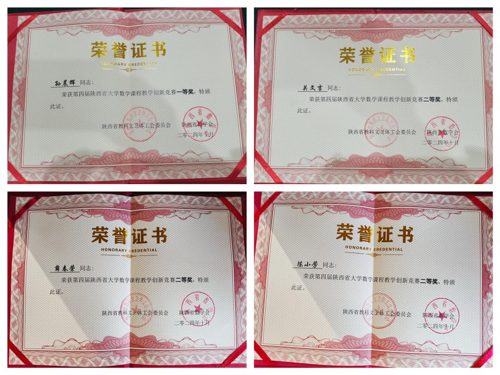 会议举行了第四届陕西省大学数学课程教学创新竞赛颁奖仪式,与会领导先后为5个优秀组织单位、6位特等奖、14位一等奖、18位二等奖和22位三等奖获得者颁发了获奖证书。我校获得优秀组织奖,孙晨辉老师获得一等奖,关文吉、薛春荣、陈小芳三位教师获得二等奖。