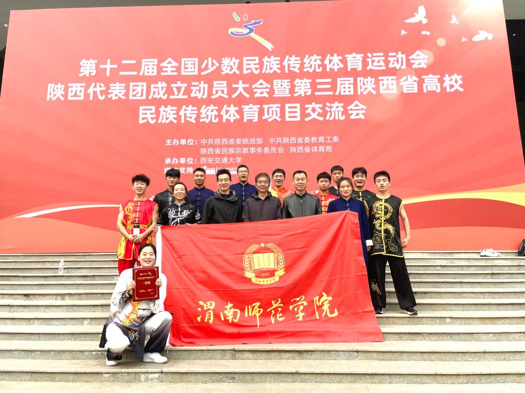 代表队以精湛的武术技艺在赛场上上演了一幕又一幕的视觉盛宴,获得了裁判员的肯定和其他队员的赞许,他们以实际行动诠释了传承民族体育、弘扬传统文化,体现了我校体育文化特色,展示了渭师学子的精神风貌,为我校争得了荣誉。