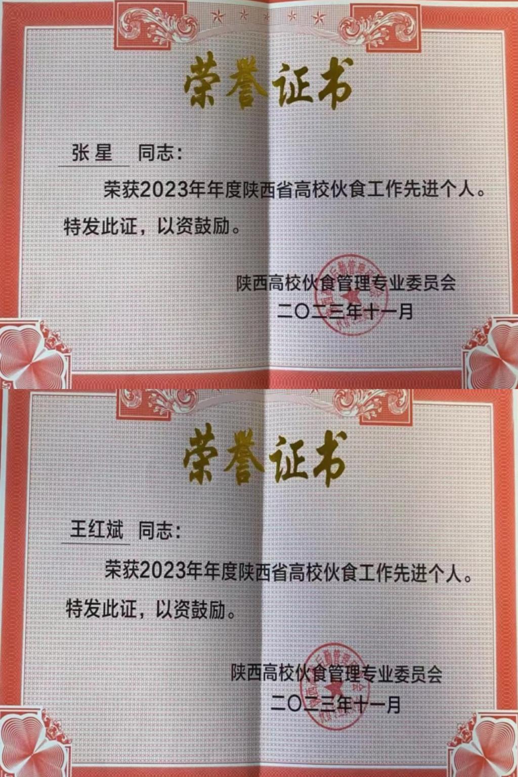 近日,陕西高校伙食管理专业委员会公布了2023年伙食工作先进集体、先进个人评选结果。我校后勤服务中心饮食管理科荣获“先进集体”,科长助理王红斌、管理员张星荣获陕西省高校伙食工作“先进个人”。