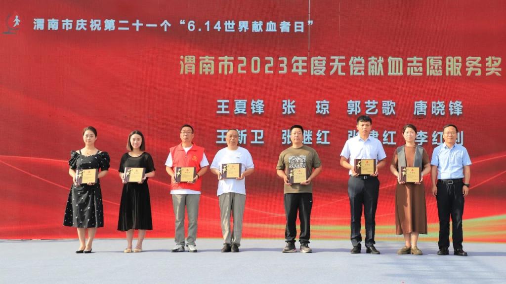 近日,渭南市庆祝第21个“世界献血者日”主题活动在渭南市中心广场举行。渭南市政府副市长刘宝琳致辞,并为获奖单位及个人颁发感谢状。