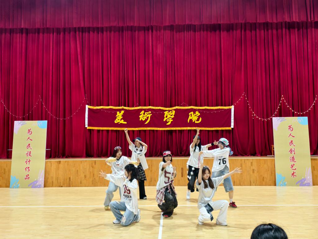晚会在充满青春活力的舞蹈《爱在1960》中热闹开场。整场晚会精心策划,分为“溯源・岁月鎏金”“逐梦・青春正好”“远航・共向未来”三个篇章,层层递进,展现学校发展的壮丽画卷与美术学院师生的精神风貌。